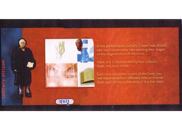 In the early 1990s, a number of exciting and challenging multimedia performances were devised and performed by a group of musicians, visual artists and technologists. Emma was an active participant in this collaboration. The first, 'Solitary Citizen' was presented in The Cottier, a renovated church in the West End, Glasgow. It was ambitious musically, visually and technically. Emma produced some animations to accompany specific music tracks performed by The Moors lead by Malcolm Lindsay. The second multimedia project, 'Positively Forth Street' was performed on a three night tour in Kirkcaldy, Dunfermline and Cupar, Fife. The work was composed by Malcolm and involved a quartet from the Scottish Chamber Orchestra and Richard Jobson as narrator. Emma created animations again and also worked with Melanie Sims, taking her images of Fife urbanscapes and manipulating them digitally. This time the images and animations related to poems written by Ronnie Kerr. |